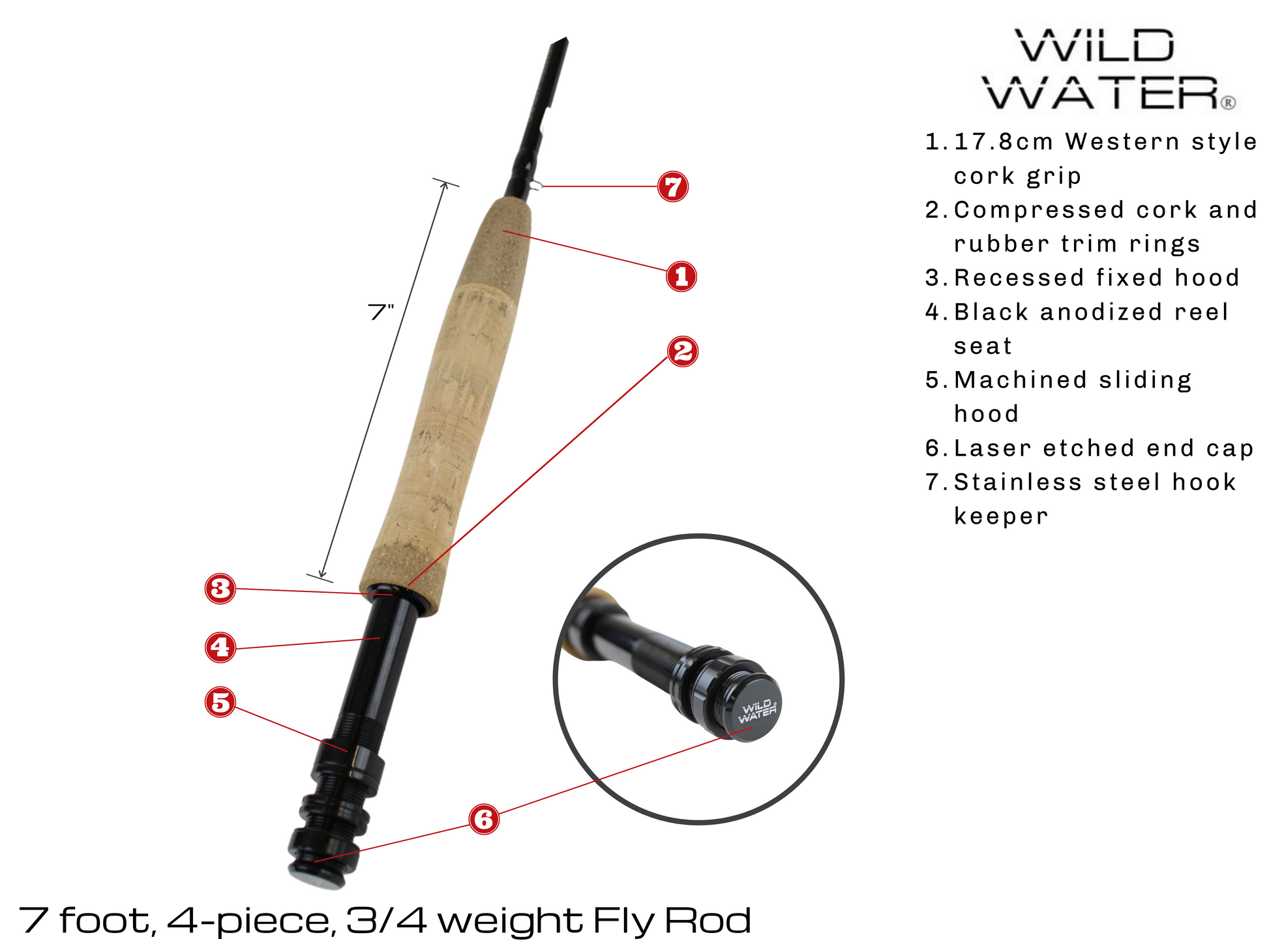 3/4 weight Fly Rod, 7ft | 4 Piece | Wild Water Fly Fishing