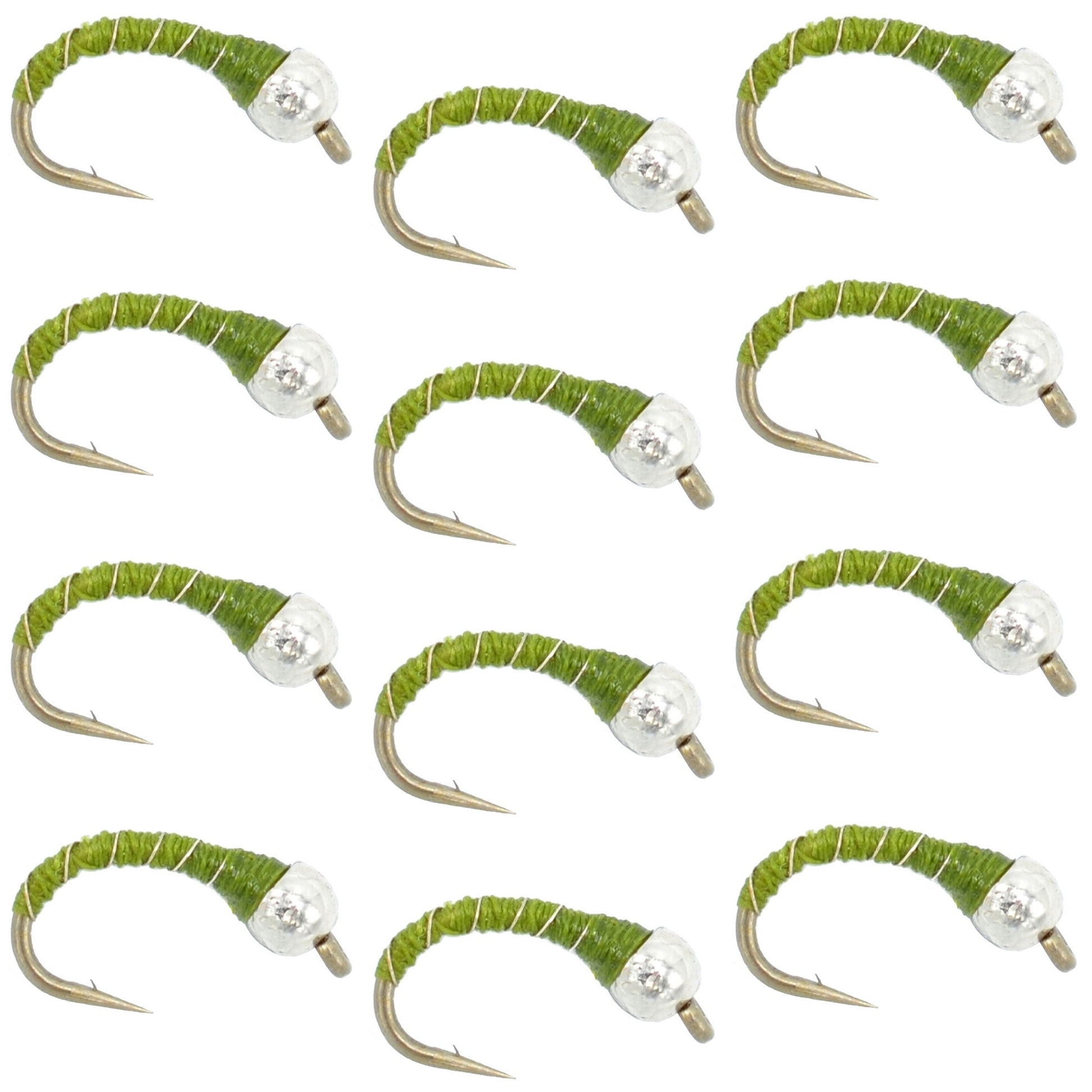 Bead Head Olive Zebra Midge Still Water Nymph 1 Dozen Hook Size 16
