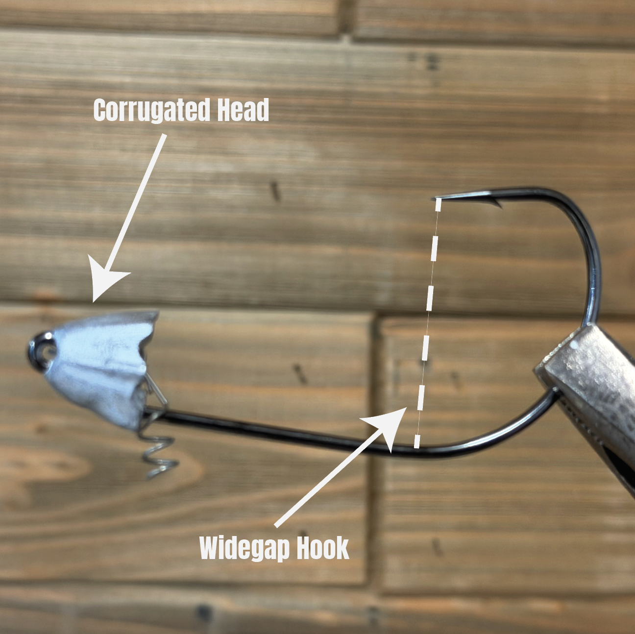 Built to eliminate the need for glue, this swimbait head features a patent-pending screw-lock that allows for custom rigging of your bait to the hook position of your choice and allows the bait to pivot out of the way on hookup. Molded with a corrugated head to deliver seductive action and backed by a razor-sharp premium hook. Designed with a sticky-sharp 4/0 wide gap premium hook to provide a smaller offering that produces big results with those 2.5-inch to 4-inch swimbaits.
