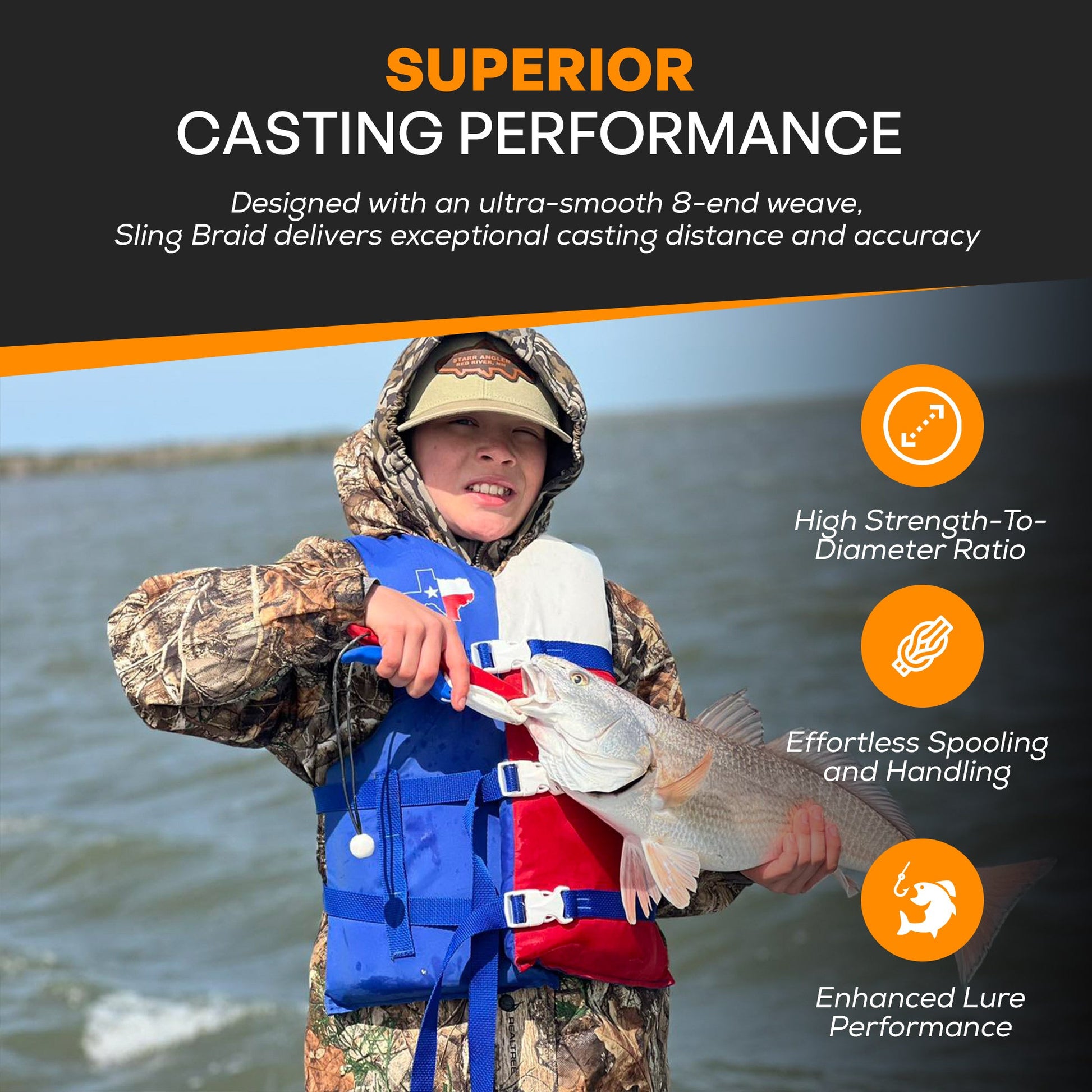 - Superior Casting Performance: Designed with an ultra-smooth 8-end weave, Sling Braid delivers exceptional casting distance and accuracy, perfect for both spinning and baitcasting setups.