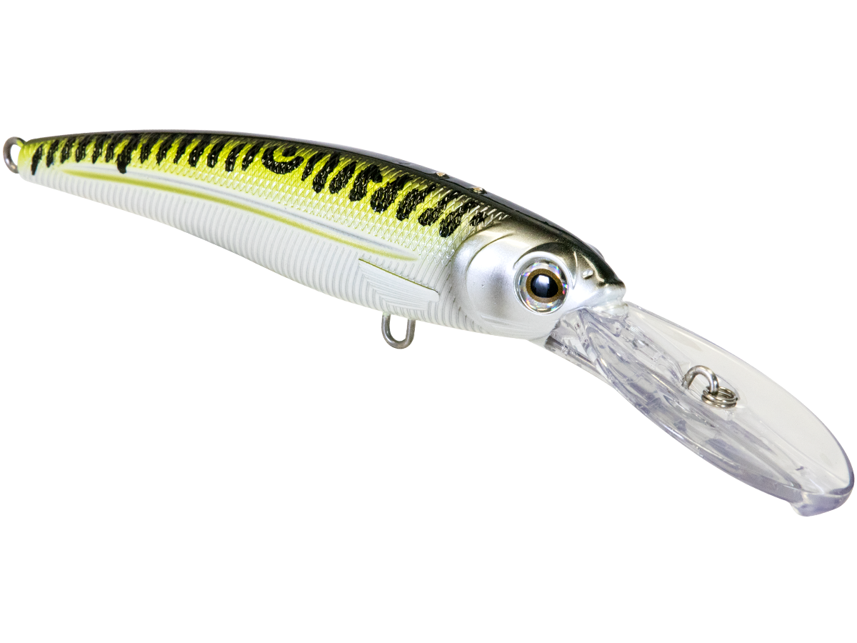 The deep-diving action of the VOYAGER 30 was engineered to get down to the 30-foot depth range where tuna, redfish, kingfish, striped bass, drum, and your choice of catch often reside. And once it's down there, the Voyager 30 goes to work with an irresistible, baitfish-imitating swim action that holds up to both high- and low-speed trolling. It delivers the undeniable attraction of EBS Technology that emits the actual biological sounds of baitfish, such as ballyhoo, croaker, and mullet, to draw fish from double the distance of traditional lures. This "Fish Catching Machine" is the first deep-trolling lure that perfectly mimics both the natural sound and swim action of the forage that saltwater predators feed on! The Voyager 30 is built with a 2mm wire-through construction to withstand challenging strikes.