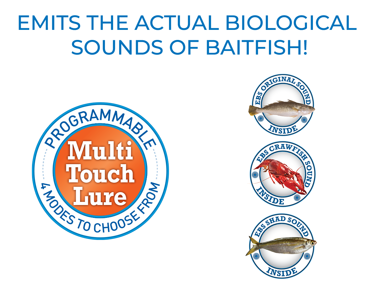 The WALK N POP features a deeply concave face that maximizes water displacement. This popper pops and spits water like no other! Its fish-calling attraction is boosted by EBS MultiTouchTM, meaning you can change the natural sounds the bait emits and draw fish from double the distance of traditional poppers! The 77' weight and balancing system allow anglers to cast with precision.