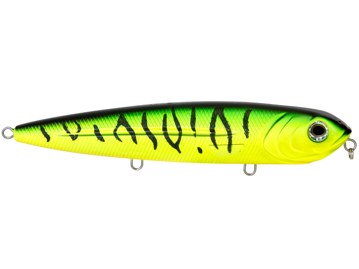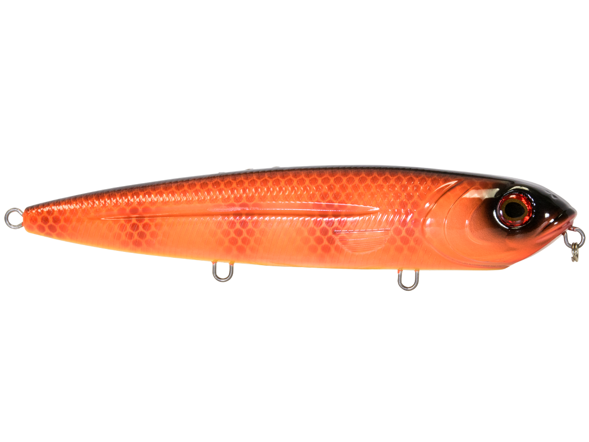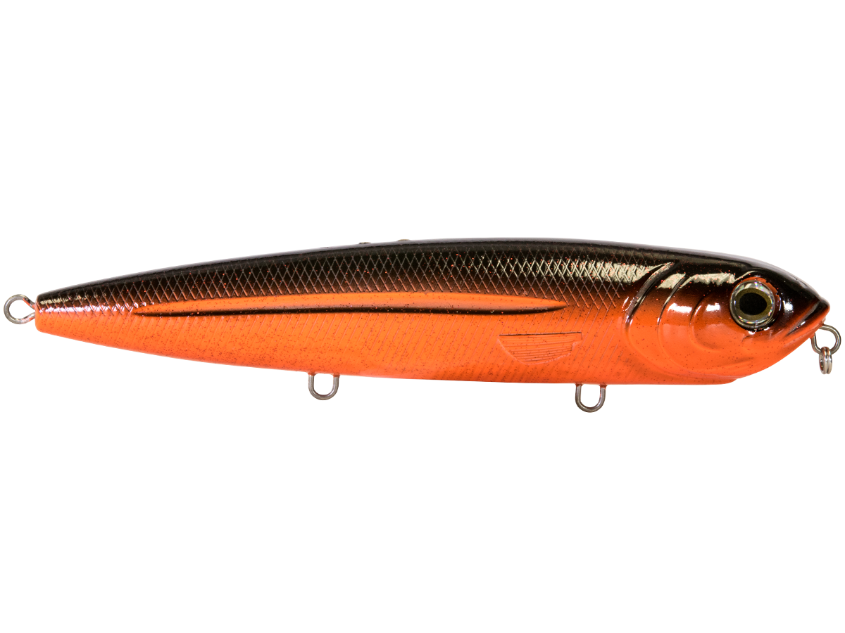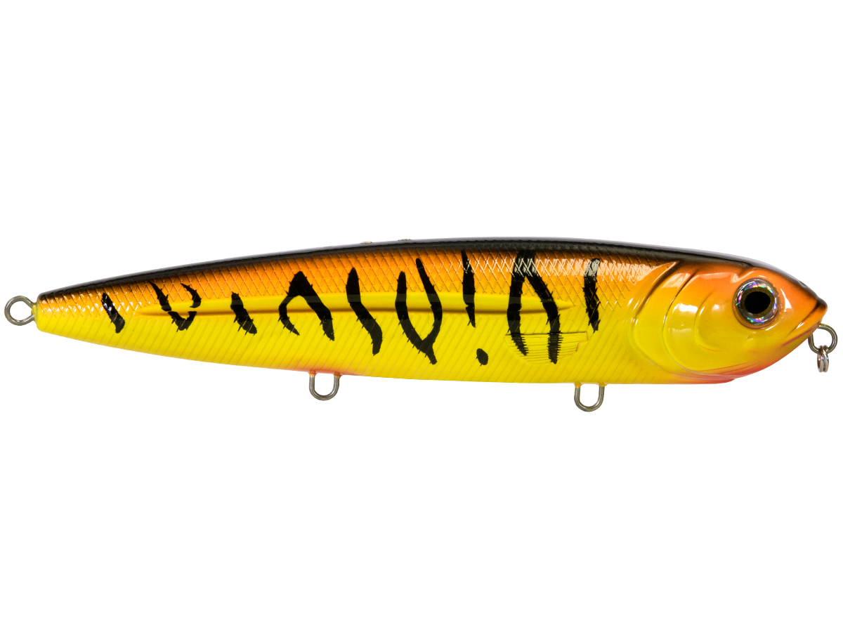The 8-inch WALKING BOSS MAGNUM is the new pinnacle for walking baits. Enhanced with the power of EBS and designed to produce an irresistible side-to-side topwater commotion, the Walking Boss Magnum is a can't-miss for giant musky and pike, to name a few. The bait's elongated body design produces a flashy "walk the dog" action, while EBS reaches out to predators at double the distance of traditional lures! Add sturdy 2mm wire through construction and VMC 4X premium hooks and you have a topwater lure that's built to withstand the abuse of the multiple fish it attracts.