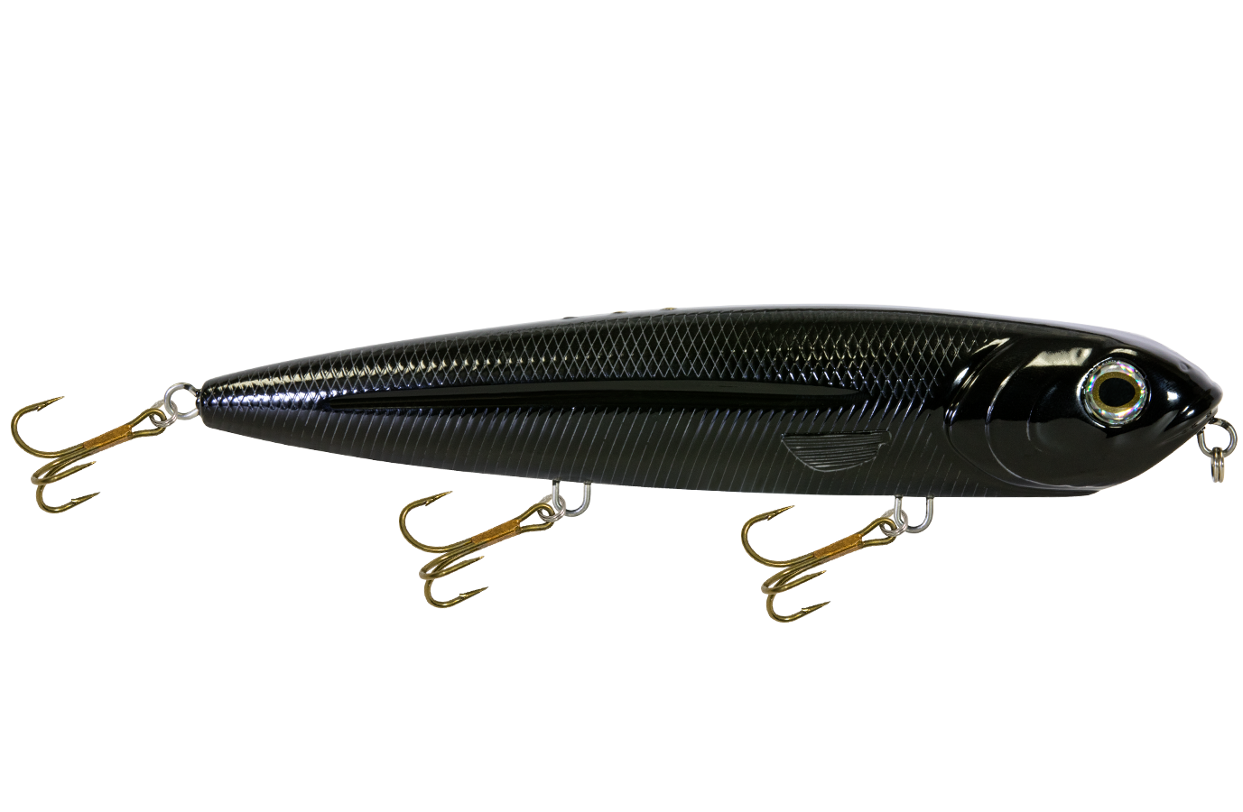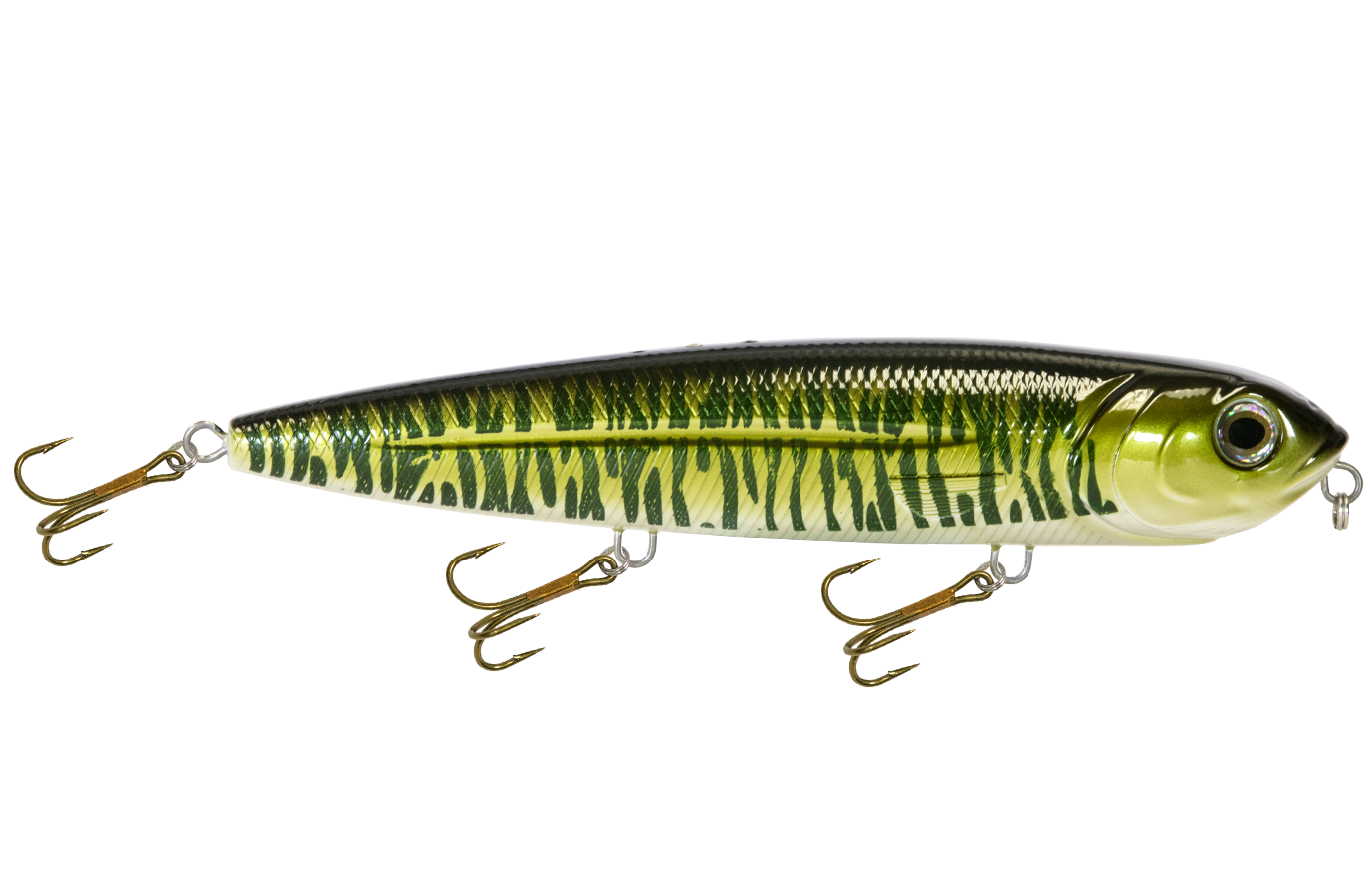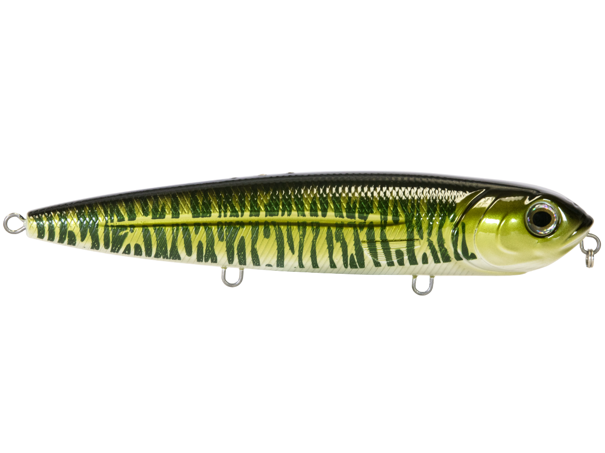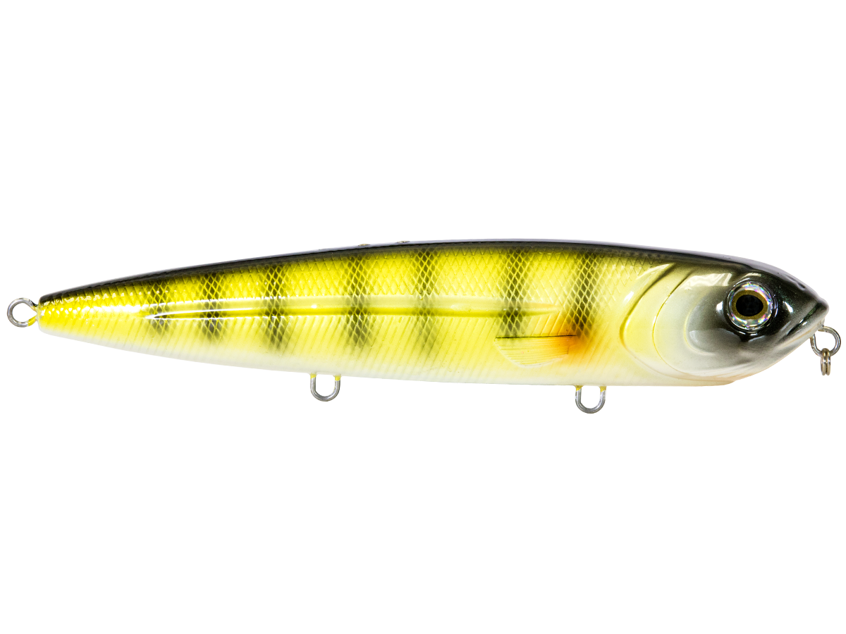 The 8-inch WALKING BOSS MAGNUM is the new pinnacle for walking baits. Enhanced with the power of EBS and designed to produce an irresistible side-to-side topwater commotion, the Walking Boss Magnum is a can't-miss for giant musky and pike, to name a few. The bait's elongated body design produces a flashy "walk the dog" action, while EBS reaches out to predators at double the distance of traditional lures! Add sturdy 2mm wire through construction and VMC 4X premium hooks and you have a topwater lure that's built to withstand the abuse of the multiple fish it attracts.